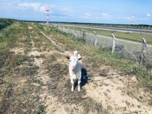 沖縄では多くの離島も仕事やプライベートで訪れた。写真は波照間島の空港近くにいたヤギ