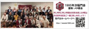 他の年次稲門会と比べても活発に活動していると自負しておりますが、メタ穂会で把握している連絡先は約600人です。対象者は約8000人、校友会費の納入者も約2000人もいるのにまだまだ周知されておりません。メタ穂会の地方支部も増やしておりますが全都道府県に至っておりません。ZOOM会議やホームページ等もおこなっていますが新規の参加者は少ない現状です。卒業50年で校友会からの年次稲門会への強化補助費も打ち止めとなります。あと10年でどれだけ認知をふやせるか。メタ穂会の会費はなく企画都度の清算です。お気軽に都合の良い時に好きな企画にご参加いただければ幸いに存じます。駅伝応援、ラグビー観戦、新年会、花見、早慶レガッタ観戦、野球早慶戦観戦、夏企画、総会、稲門祭、忘年会など様々な企画がございます。詳しくはホームページhttps://waseda1985.com/をご覧ください。32期の方々の参加をお待ちしております。私は40歳を過ぎて新たな親友ができるとは思いもしませんでした。他の年次の方も自身の年次稲門会がございますので是非ご参加ください。同じ年代で同じ早稲田の雰囲気を知る仲間は最高です。ありがとう早稲田。