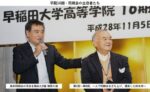 いよいよ、同期会も〆の時間帯に入ってきました。毎回ここで登場するのは早稲田大学応援部の方々です。彼らを招聘して“紺碧の空”や“早稲田の栄光”の後、“早稲田大学校歌”を全員で、大声で叫ぶように歌って同期会を終了するのです。